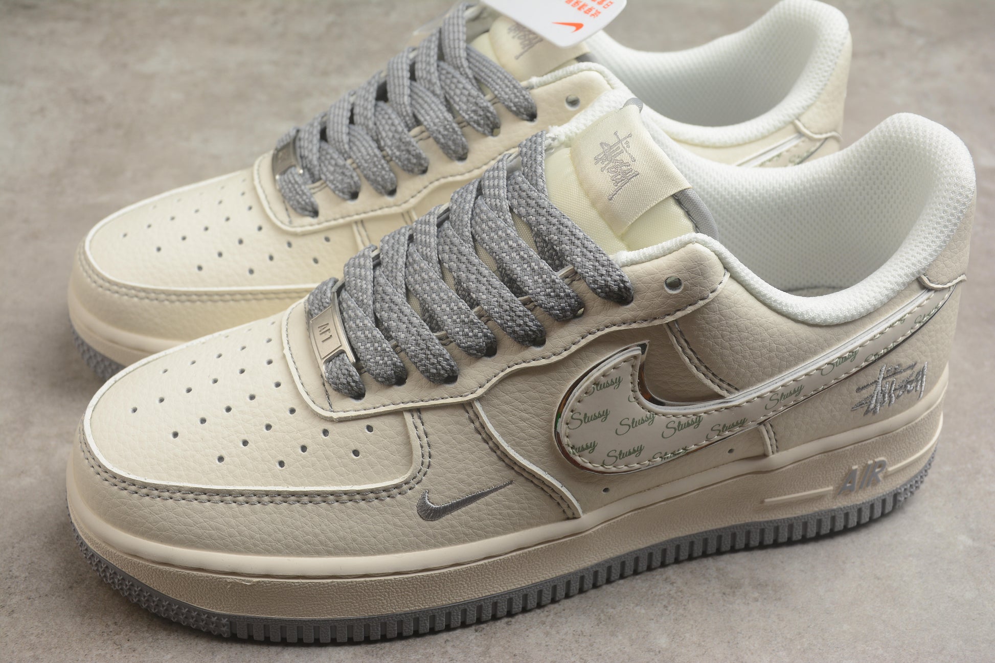 Las Nike Air Force 1 Low x Stüssy beige y gris reinterpretan la silueta clásica con el estilo relajado y contemporáneo de la marca californiana. Confeccionadas en materiales premium y una mezcla de texturas naturales, combinan tonos beige suaves con detalles en gris que aportan equilibrio y versatilidad. El logotipo bordado de Stüssy en el lateral y la lengüeta resalta el carácter exclusivo de esta colaboración, mientras que la suela Air ofrece comodidad y amortiguación duradera. Un diseño que une la herencia urbana de Nike con la estética minimalista y artesanal de Stüssy.