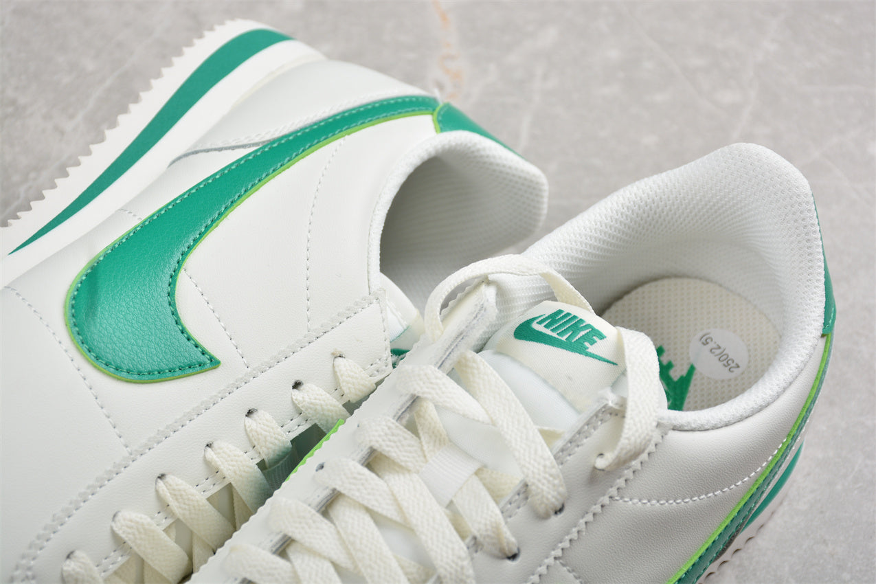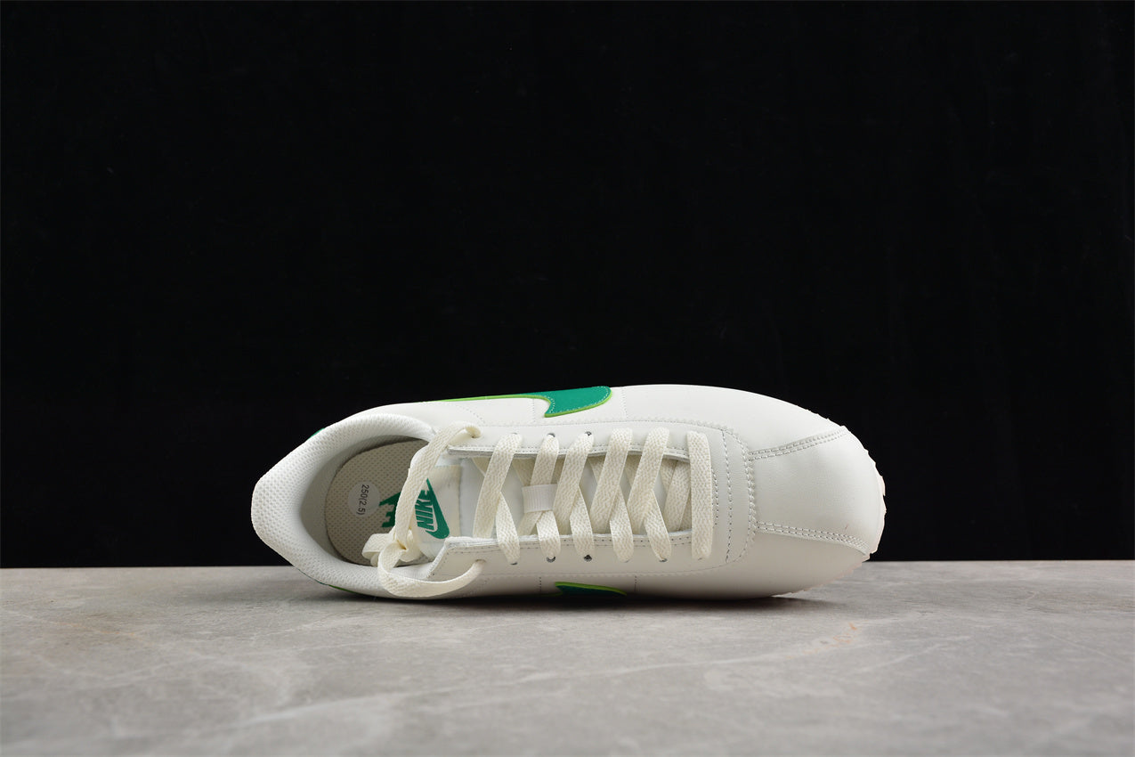 Las Nike Cortez blanco y verde combinan el diseño clásico de los años 70 con un estilo fresco y moderno. Su parte superior de cuero blanco limpio contrasta con el Swoosh verde, creando una apariencia elegante y versátil. Equipadas con una entresuela de espuma EVA para una amortiguación ligera y una suela de goma con patrón en espiga que asegura tracción y durabilidad. Este modelo es perfecto para quienes buscan comodidad diaria sin renunciar al estilo atemporal de Nike.