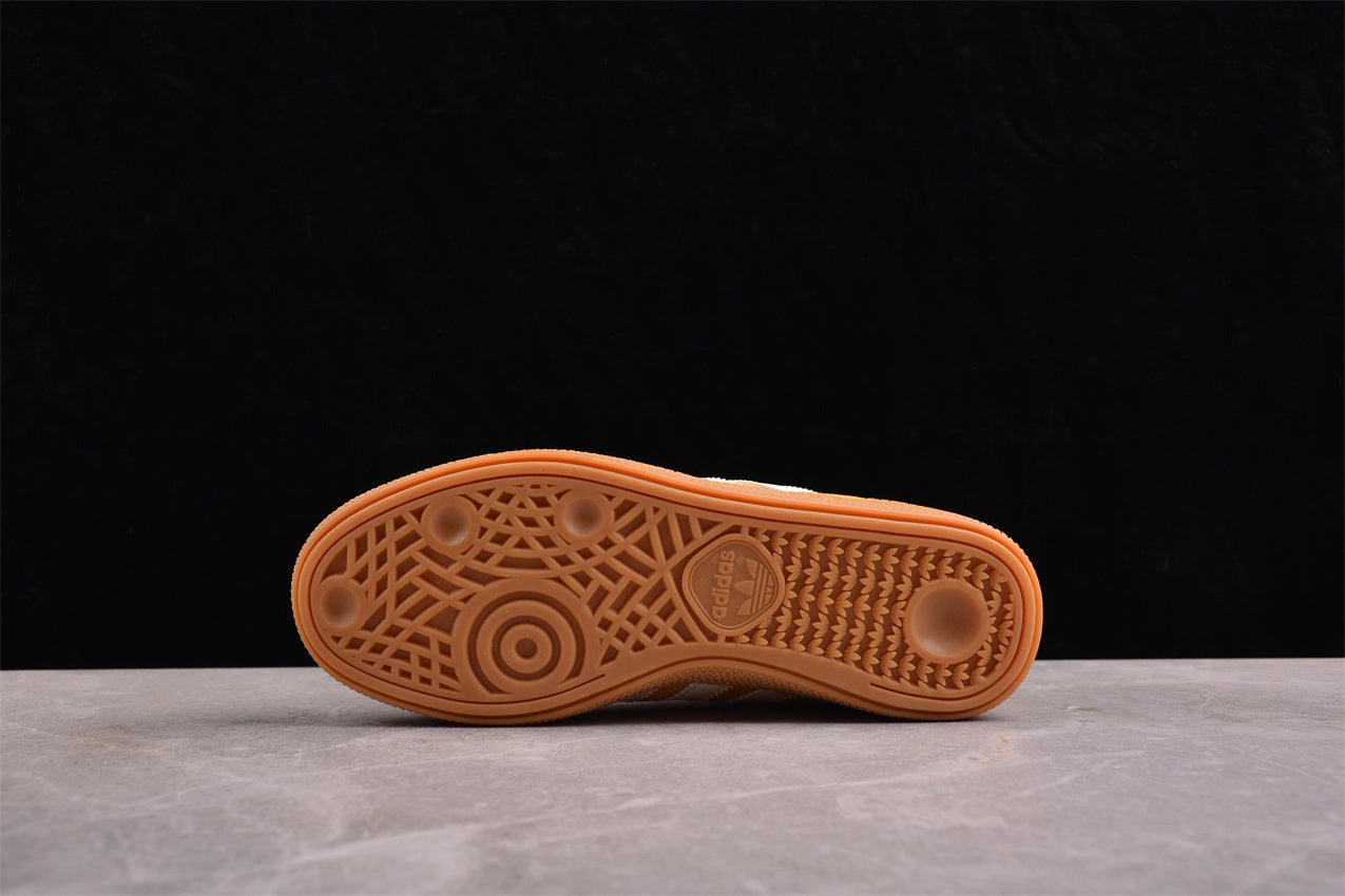 Las adidas Handball Spezial mostaza y blanco combinan la herencia deportiva de los años 70 con un estilo actual lleno de carácter su parte superior de ante en tono mostaza destaca por su textura suave y su contraste con las tres bandas en color blanco que realzan la silueta clásica su suela de goma proporciona tracción y comodidad en cada paso ofreciendo una pisada firme y estable ideales para quienes buscan un look retro con personalidad y autenticidad su diseño versátil permite combinarlas fácilmente con prendas urbanas y casuales aportando un toque distintivo y elegante.