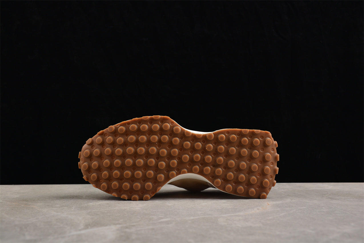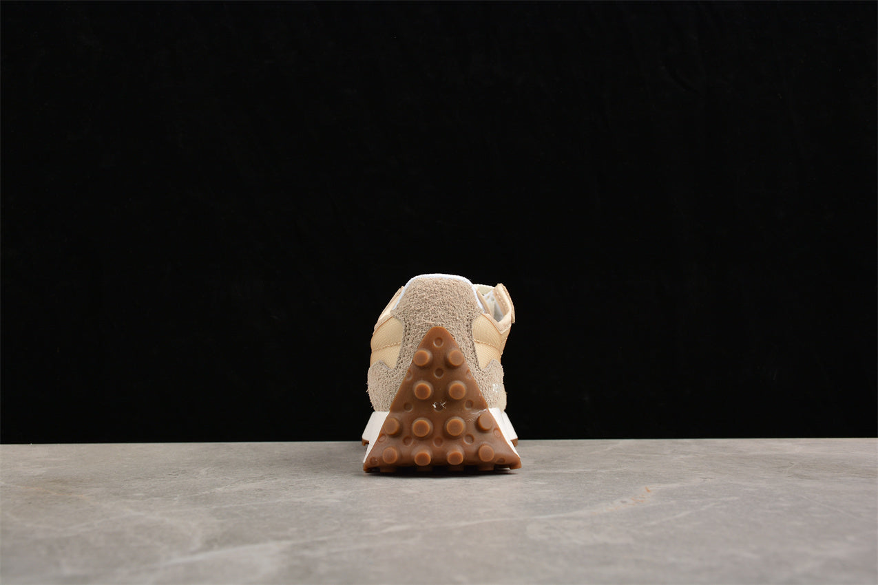 Las New Balance 327 beige y blanco fusionan el diseño clásico de los años 70 con una estética moderna y limpia. Su parte superior combina ante y nylon en tonos beige suaves que transmiten calidez y versatilidad, mientras que el icónico logotipo “N” blanco aporta contraste y equilibrio. La suela dentada extendida, inspirada en los modelos de trail vintage, ofrece tracción, comodidad y un toque contemporáneo. Este modelo representa la unión perfecta entre herencia deportiva, confort y estilo urbano refinado.