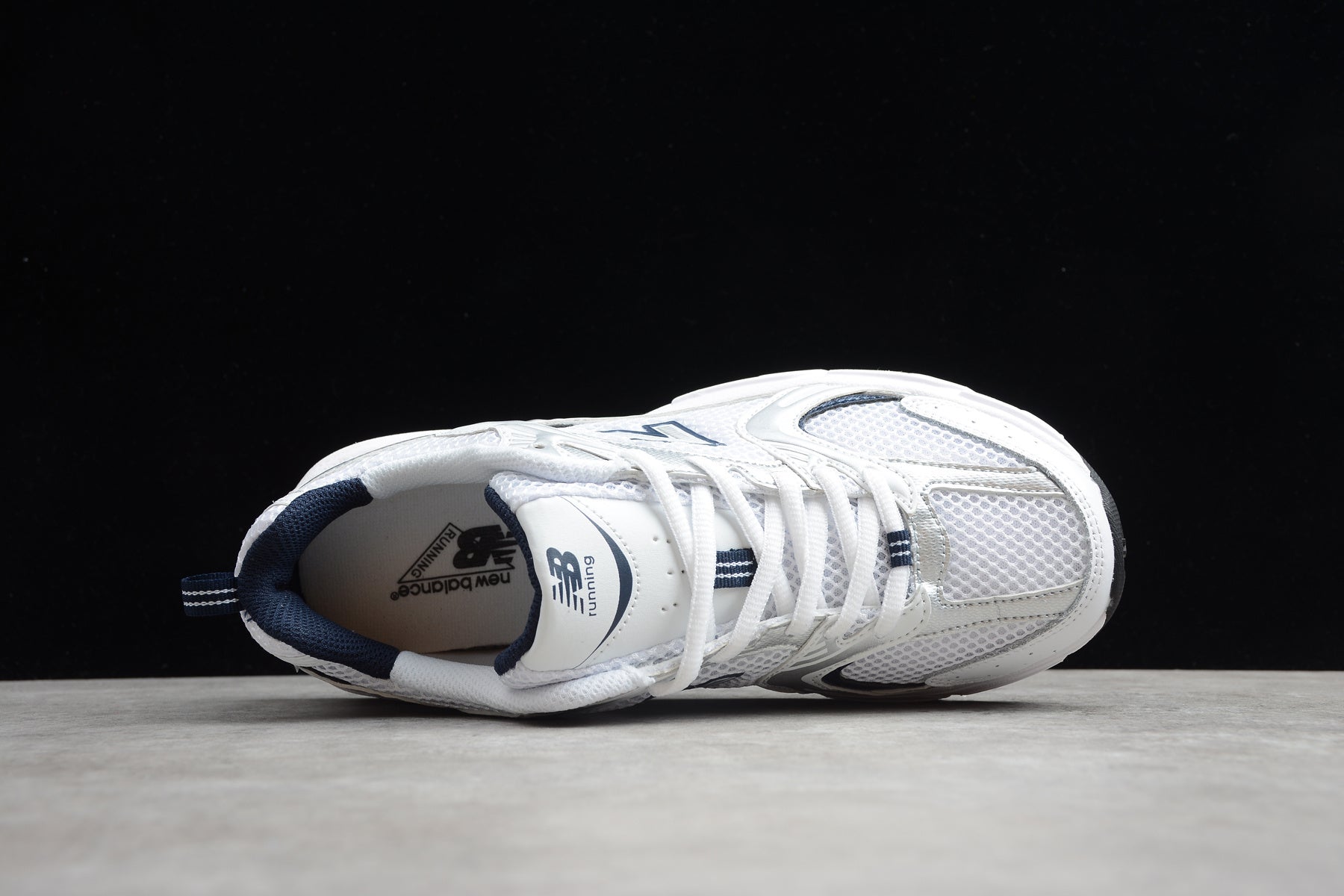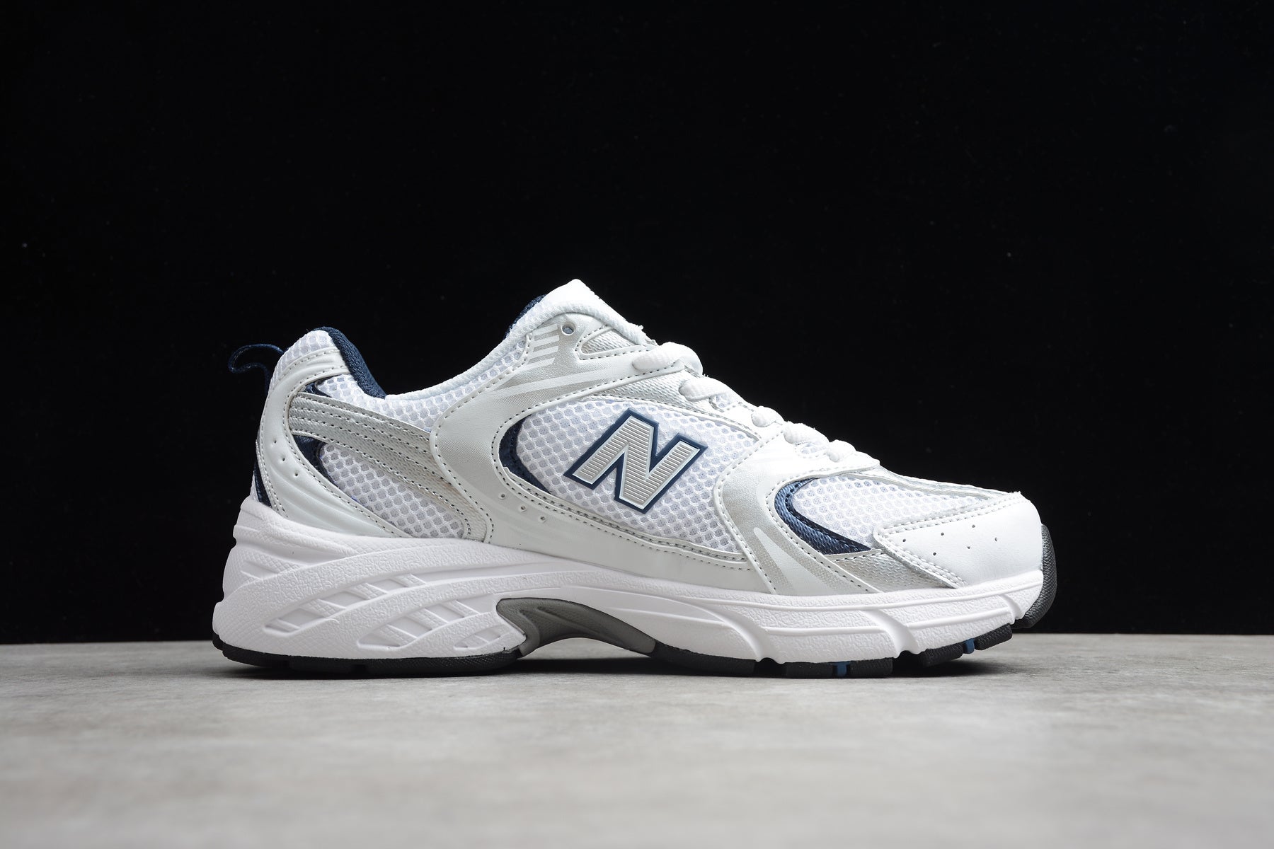 NB 530 blanco y azul marino