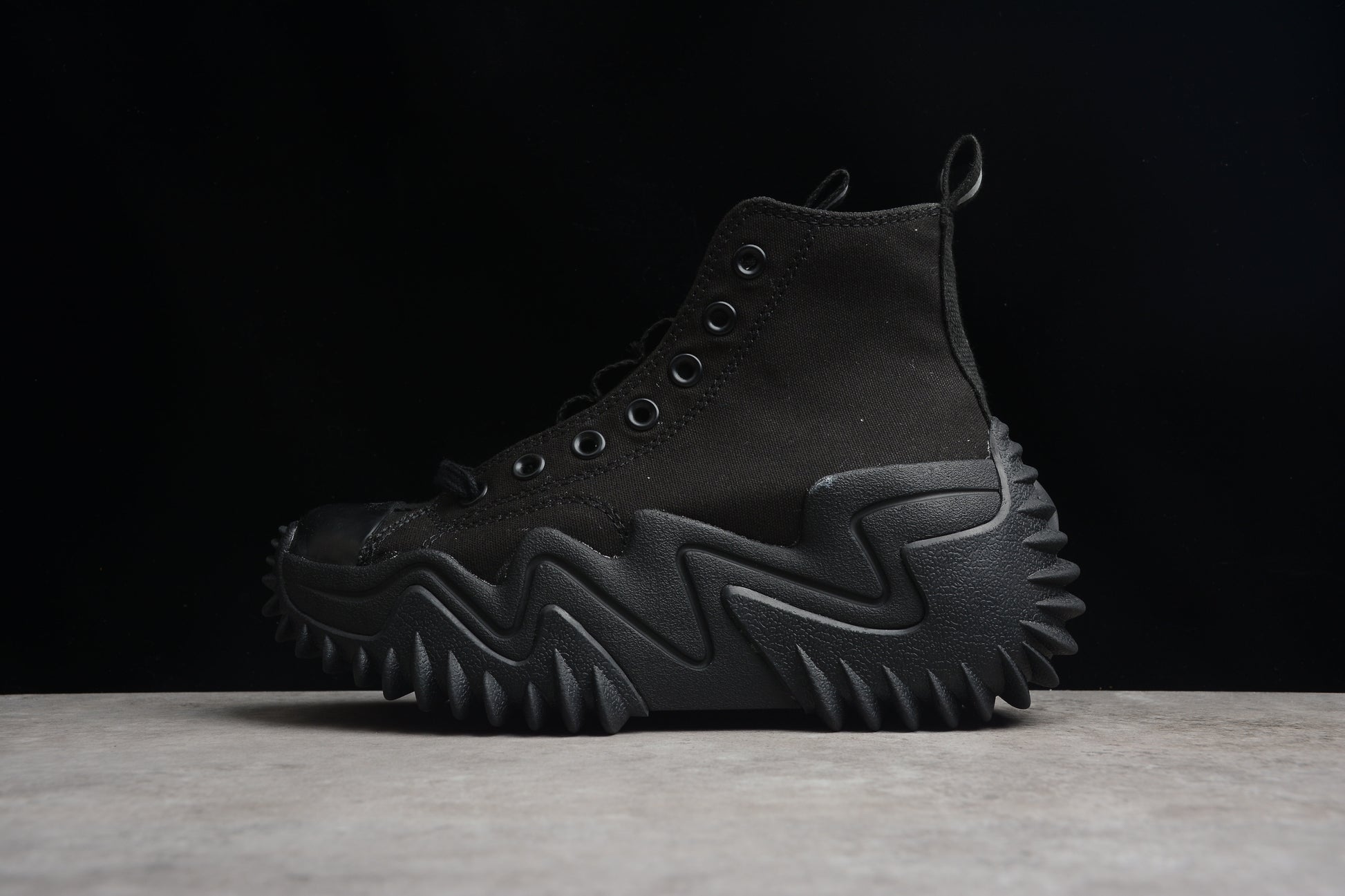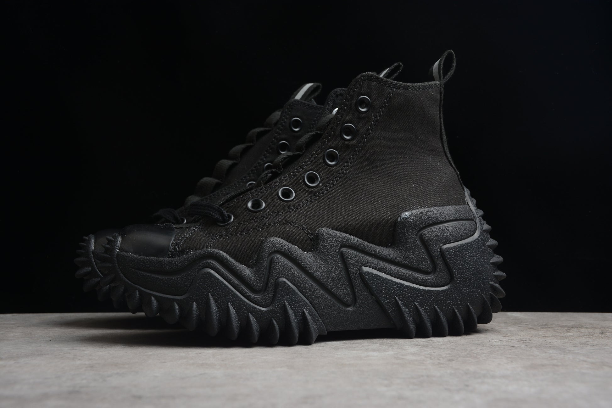Las Converse Run Star Motion HI Negro Total llevan la innovación y el estilo urbano a otro nivel. Con una silueta de caña alta confeccionada en lona negra premium, este modelo destaca por su suela voluminosa con ondas dinámicas que aportan altura, tracción y un diseño futurista. Su estética monocromática crea un look moderno, potente y minimalista, perfecto para quienes buscan destacar sin renunciar a la comodidad. Un modelo que fusiona la herencia Converse con una visión contemporánea del street style.