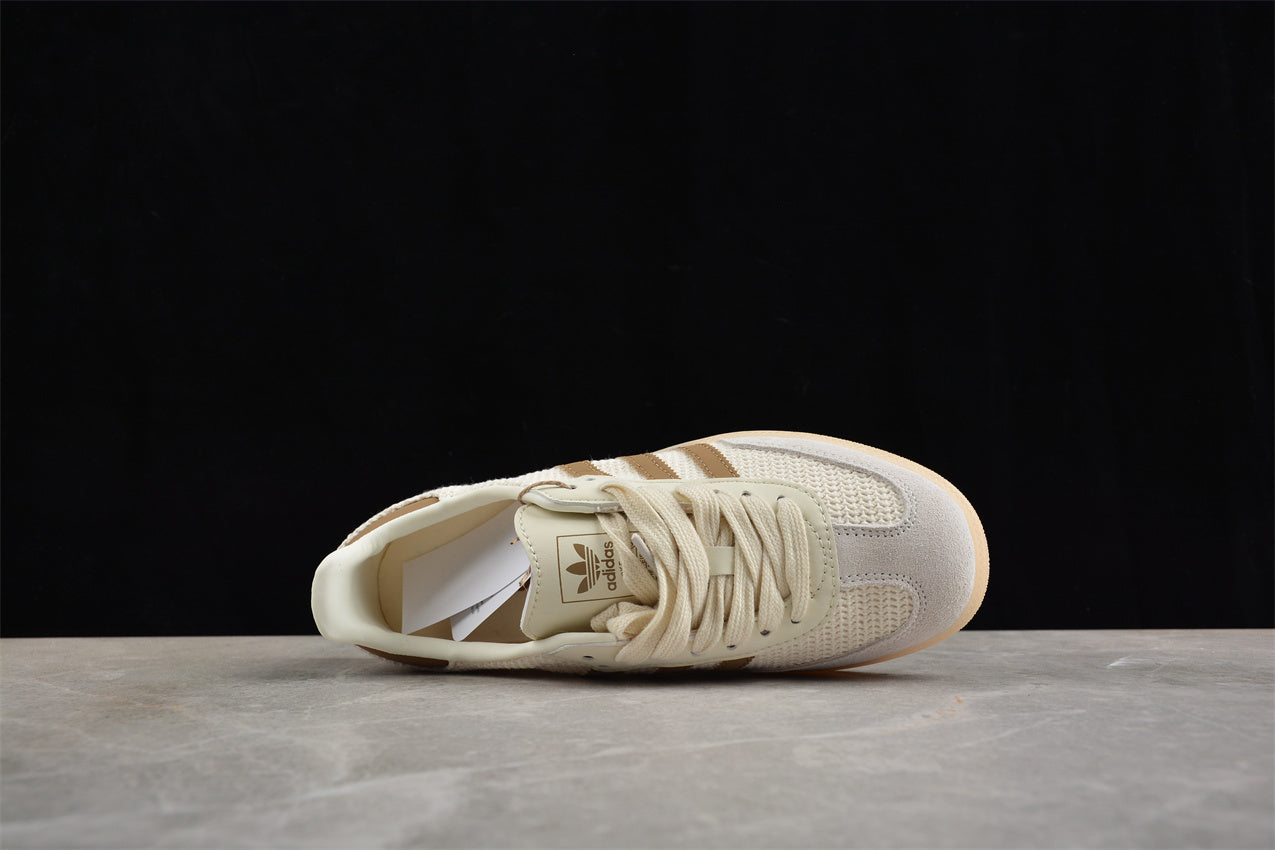 Las adidas Samba OG beige y marrón claro reinterpretan el diseño original con una mezcla de tonos neutros y materiales de alta calidad. Su parte superior en ante beige se combina con detalles en marrón claro que aportan textura, equilibrio y un aire sofisticado. La suela de goma color caramelo mantiene el carácter retro de la silueta, ofreciendo comodidad y tracción en cada paso. Este modelo conserva la esencia deportiva de las Samba clásicas, adaptada a un estilo urbano moderno y versátil que nunca pasa de moda.