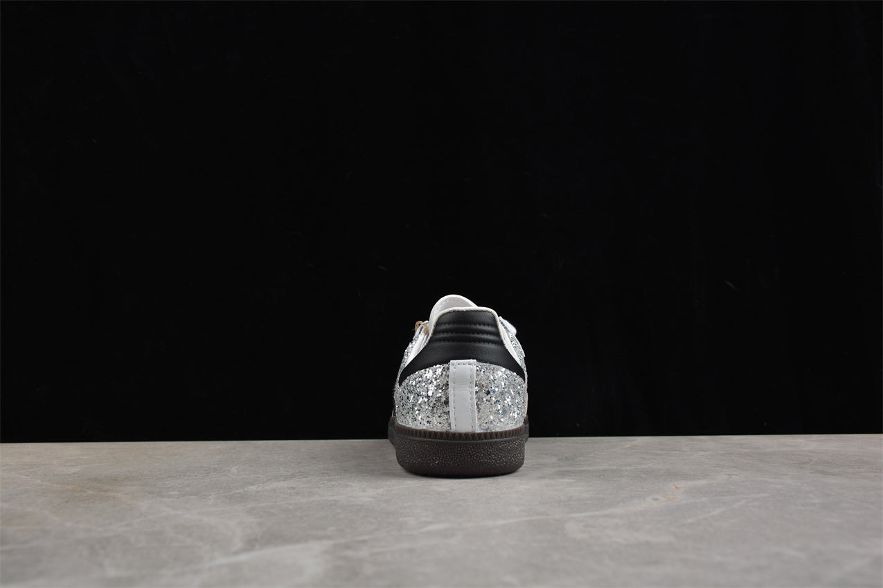 Las adidas Samba OG plateado con negro elevan el clásico diseño retro con un toque metálico y contemporáneo. Su parte superior en tono plateado aporta brillo y modernidad, mientras que las tres bandas y el talón en negro crean un contraste sofisticado que mantiene la esencia del modelo original. La suela de goma color caramelo conserva el ADN vintage de las Samba, ofreciendo tracción y comodidad duraderas. Este diseño fusiona herencia deportiva, estilo urbano y una actitud moderna perfecta para destacar en cualquier ocasión.