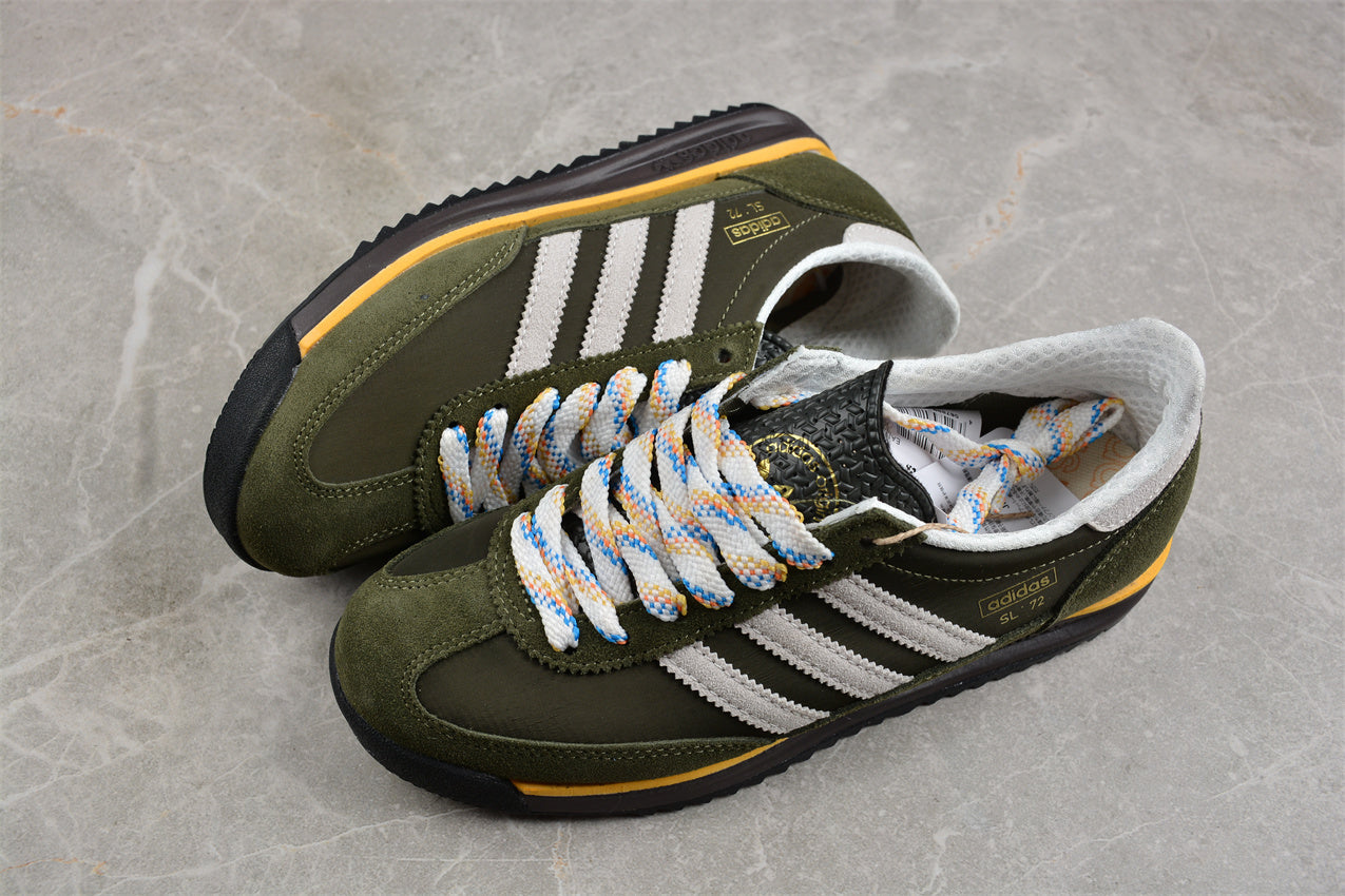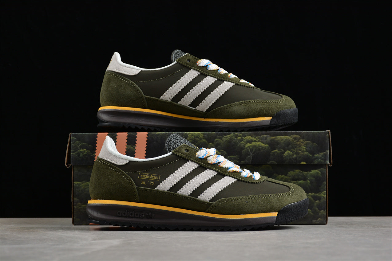 Las adidas SL 72 verde y blanco representan el equilibrio perfecto entre herencia deportiva y estilo contemporáneo. Su diseño combina una base de nylon verde con refuerzos de ante y las icónicas tres franjas en blanco, creando un contraste limpio y atemporal. La entresuela ligera ofrece amortiguación diaria, mientras que la suela dentada conserva el inconfundible carácter vintage de adidas Originals. Un clásico versátil que añade un toque retro a cualquier look casual.